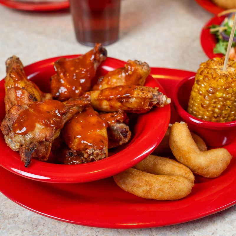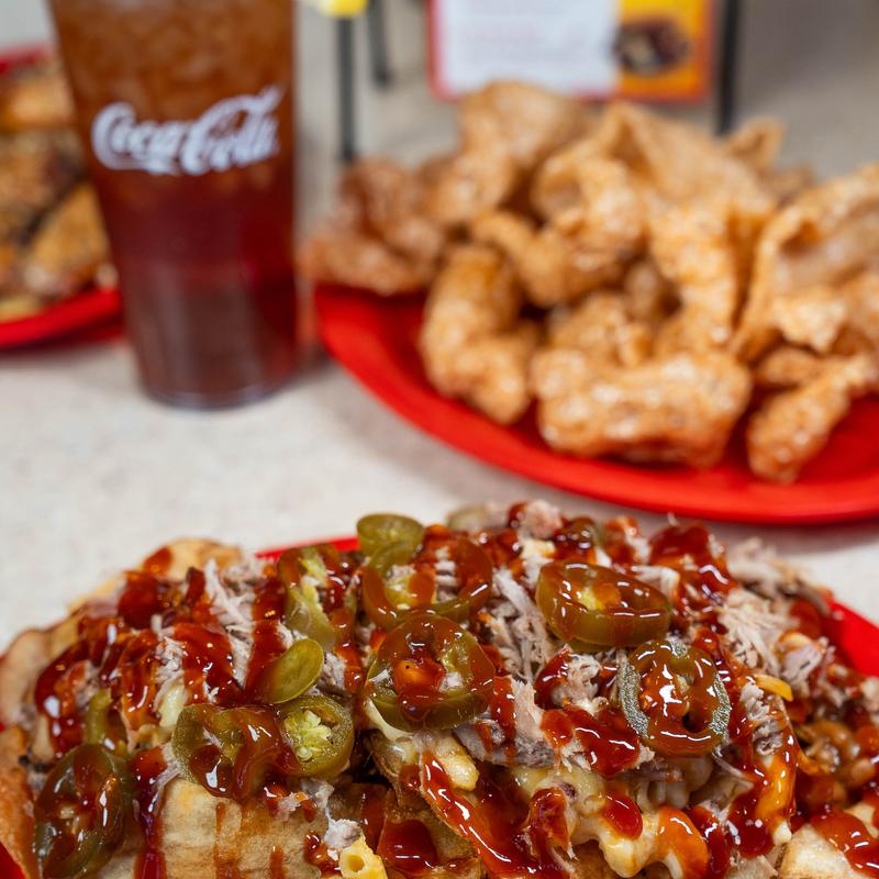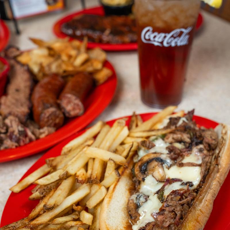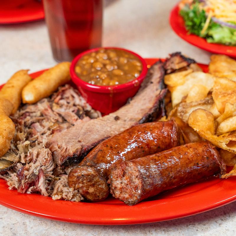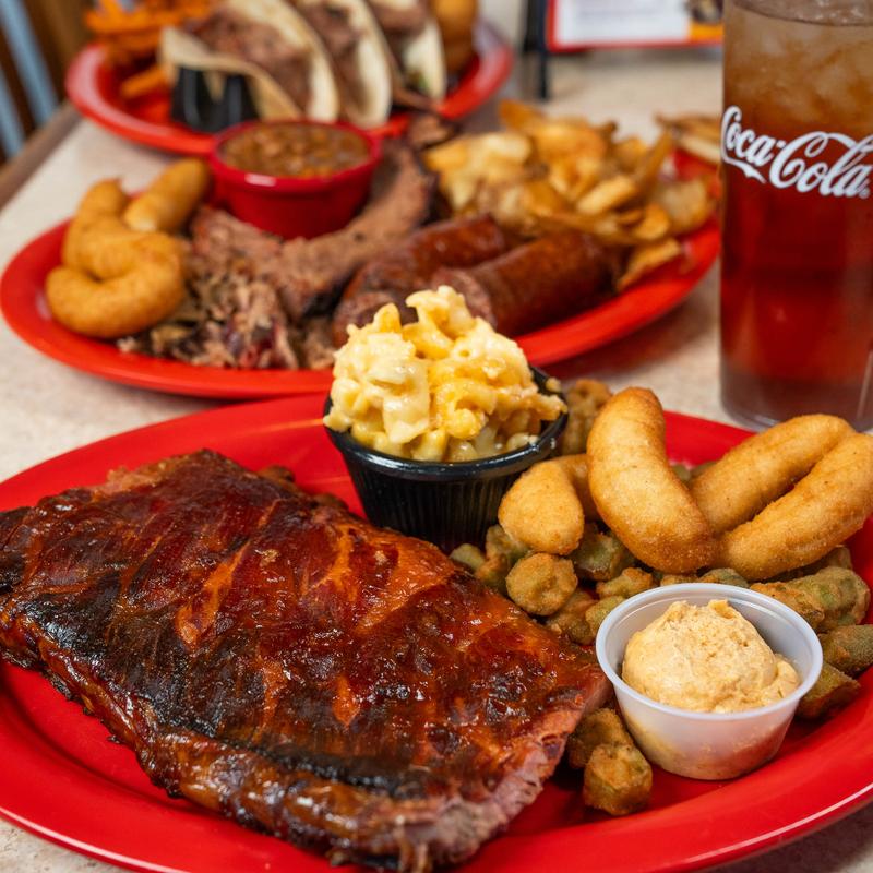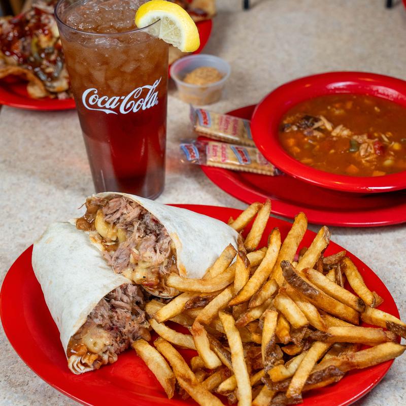 Craving real hickory-smoked BBQ? Our tender pulled pork, slow-smoked brisket, and meaty wings, with some of our 5 homemade sauces are ready when you are. Feeding the whole crew? Try our Family Feast, a popular takeout favorite packed with pork BBQ, sides, hush puppies, and sweet tea, it serves three to five guests. Pair it with an order of crispy fries, a fresh wrap, or one of our homemade desserts for a complete meal.