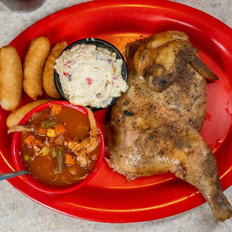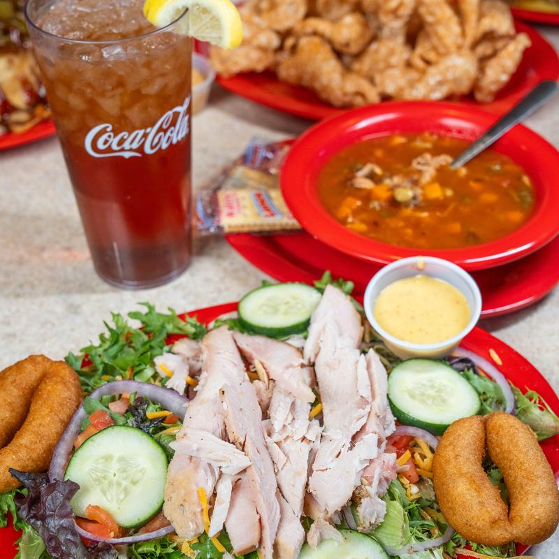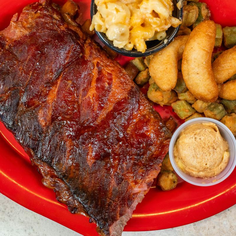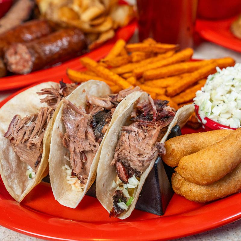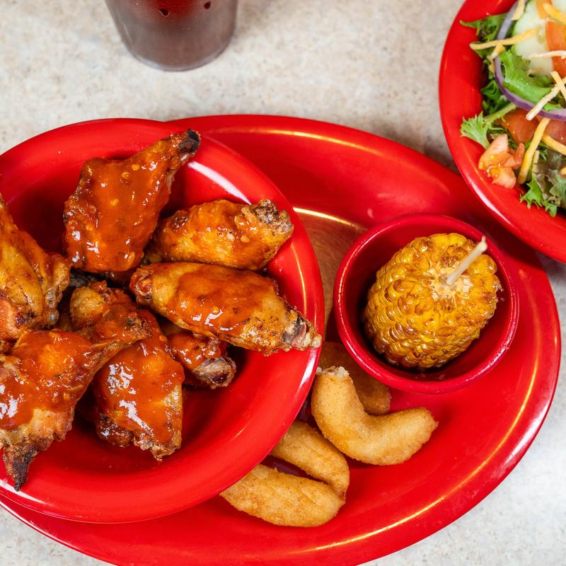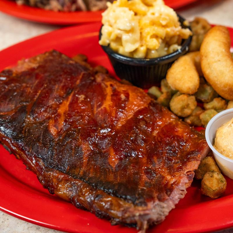 Craving real hickory-smoked BBQ? Our tender pulled pork, slow-smoked brisket, and meaty wings, with some of our 5 homemade sauces are ready when you are. Feeding the whole crew? Try our Family Feast, a popular takeout favorite packed with pork BBQ, sides, hush puppies, and sweet tea, it serves three to five guests. Pair it with an order of crispy fries, a fresh wrap, or one of our homemade desserts for a complete meal.